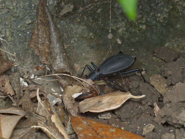 大島ではヒメマイマイカブリに食べられているところを比較的良く目にする(岡田地区で撮影)。