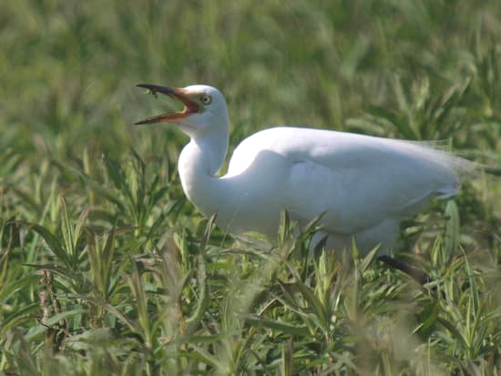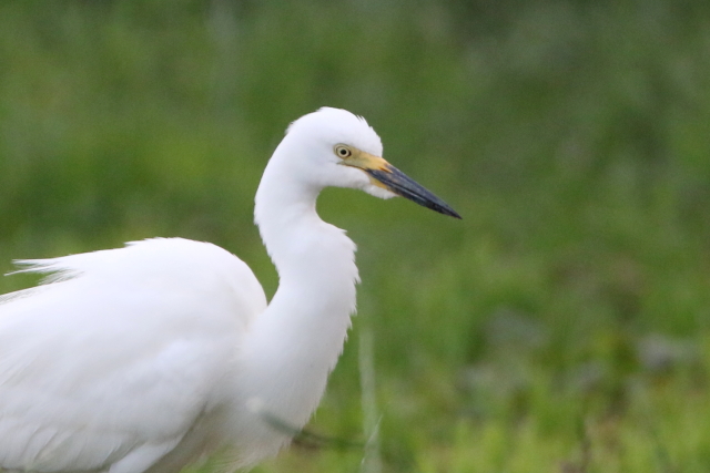 単体でいる時はダイサギとの区別に迷うが口角(こうかく)が見えれば識別可能。ダイサギは口角が目を超えるがチュウサギは超えない。春と秋に草地で食べ物を探す姿がよく見られる。ダイサギに比べ短めのクチバシは夏に黒く、冬に黄色くなる。