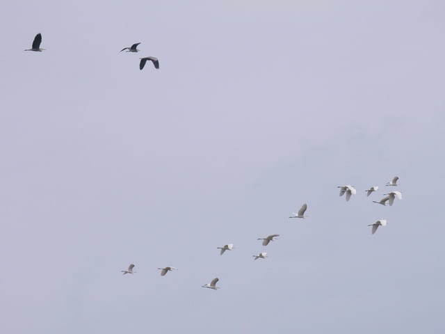 (アオサギ、ダイサギは確実、コサギ、アマサギもいるかも。もしかしたらチュウサギいないかも!?)