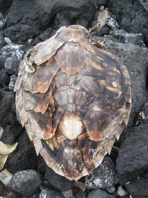 タイマイの漂着体を確認したのは、1992年以来では画像右側の1個体(2010年6月)だけだが、泉津秋の浜沖で海底に沈んでいる本種死亡個体を知人ダイバーが発見し撮影したものを確認している。