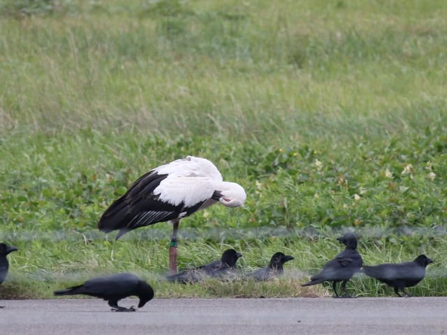 滑走路にいた 足環が付いている(野田市出身の翔と判明)