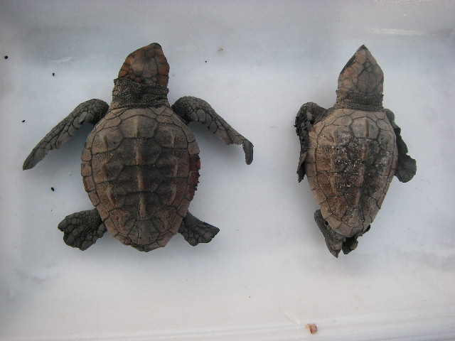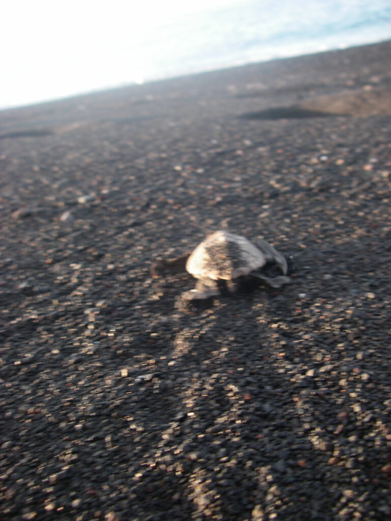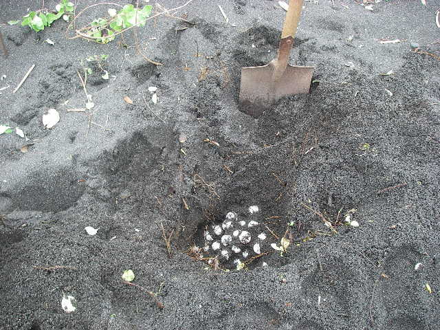 子ガメが孵化して砂中から脱出するのは、通常は安全な夜中の内だが、中には明るくなってから遅れて出る個体もある。