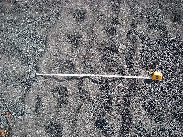 上陸痕跡の形や幅は種によって、個体の大きさによって異なる。