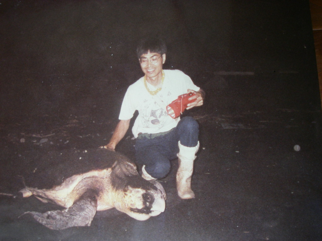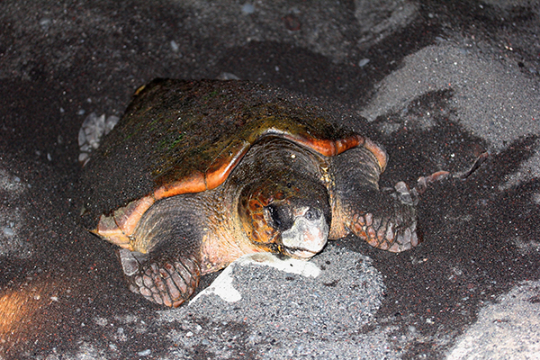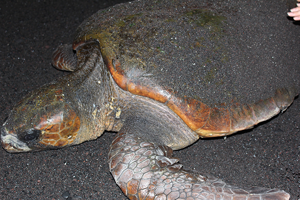 1995年8月3日、通常はより安全な夜間のに上陸し産卵を終えて海へ帰る。甲長約93cm。