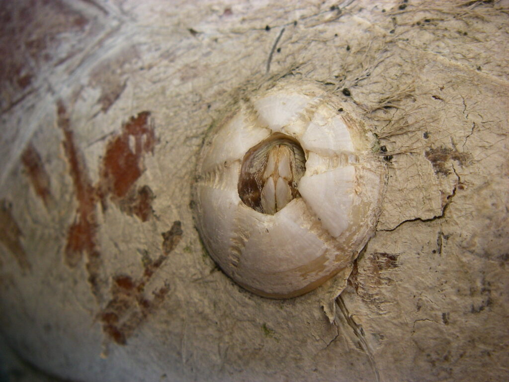 ウミガメには様々な付着物(共生生物)がいる。これは、最も目立つカメフジツボ。