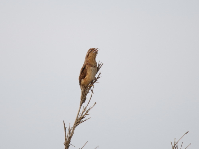 大島には秋にやって来て、到着直後はモズの高鳴きに似た「キィーキィーキィキィ・・・」という声でよく鳴く。本格的な冬になるとほとんど鳴かなくなりいるのかイないのかわからない。キツツキらしくない見た目だが舌は長い。羽毛の複雑な模様は実に素晴らしい。